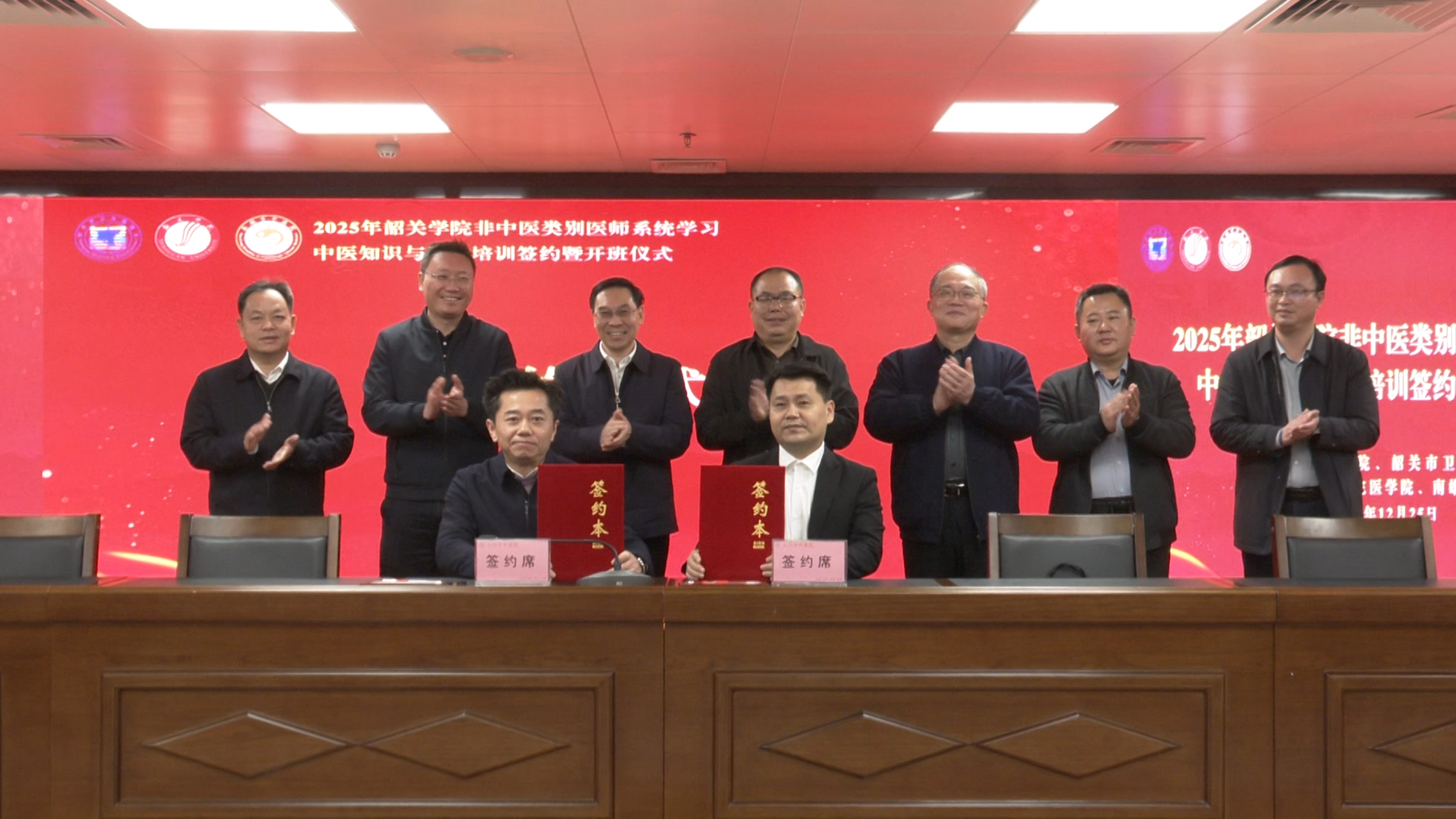 仪式上,韶关学院医学院负责人与南雄市中医院负责人签订“西学中”培训班合作协议。此次合作是韶关学院医学院与南雄市中医院携手,将系统中医理论培训嵌入医院临床一线,创新采用“高校+基地”“理论+实践”“教学+转化”模式,直面基层医院人才短板,提升该市基层医疗服务能力,促进中西医融合发展。